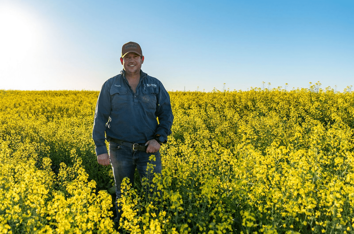 Anthony Smith in his paddock of canola on North Callandoon in southern Qld.