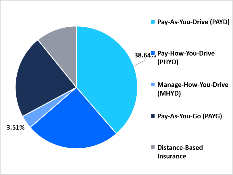 Pay-As-You-Drive (PAYD)led the market segment with 38.64% of the revenue share in 2025, driven by increasing consumer demand for mileage-based premium models that promise cost efficiency and fairness.